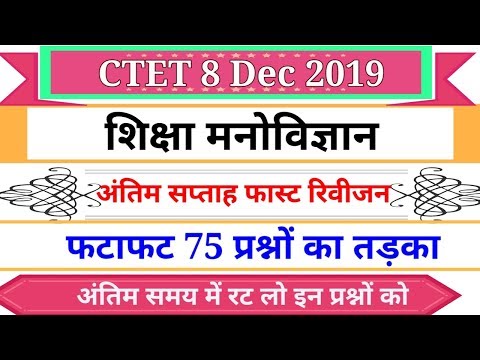 शिक्षा मनोविज्ञान के 75 अति महत्वपूर्ण प्रश्न || Educational Psychology Most Important Questions For Ctet 8 Dec 2019
