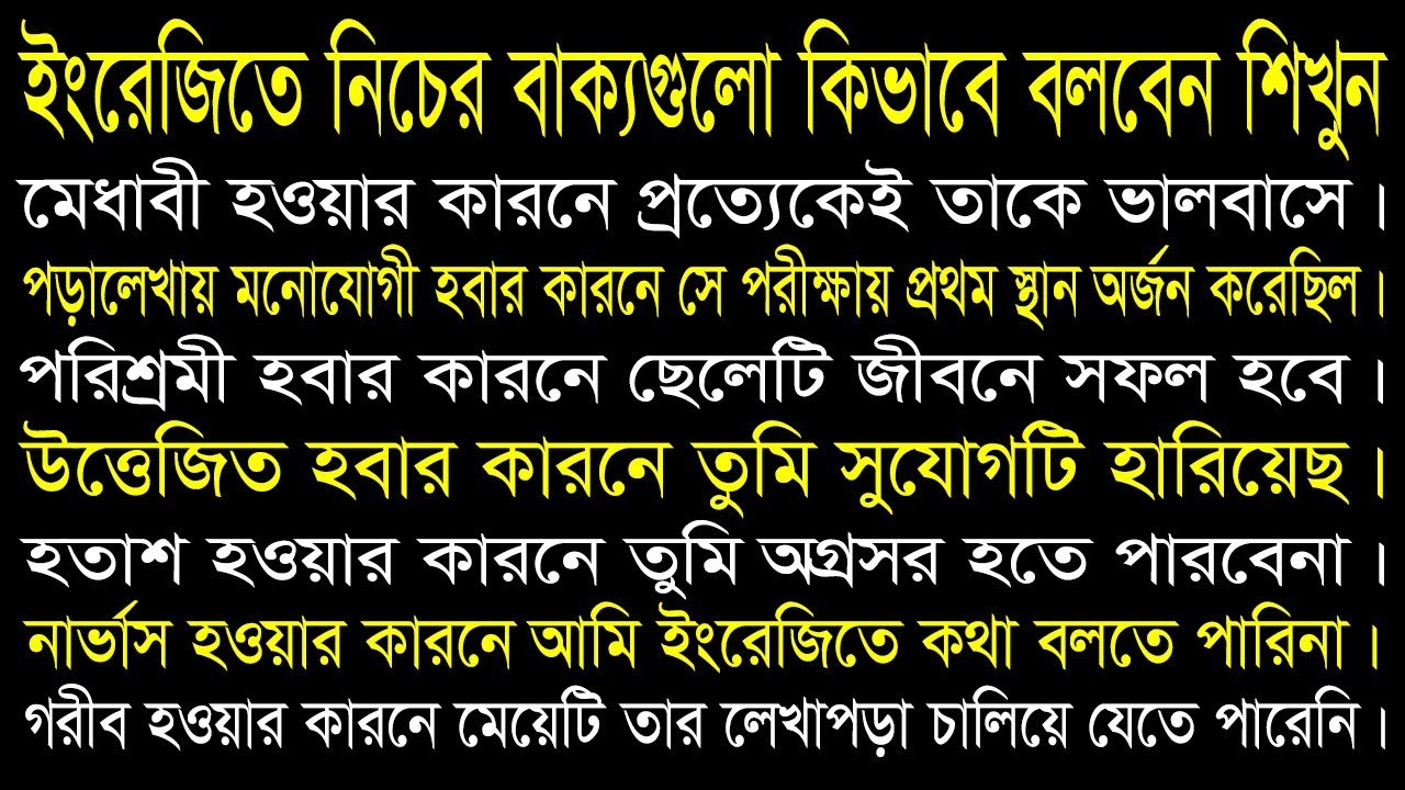 In my today’s lesson you will be showed how to make sentence using this important tips both in spoken English and free hand writing easily. This class is about English structure with a lot of Bangla to English example sentence. Here you are going learn the usage of a useful structure of spoken English and free hand writing. With a view to learning the uses of this daily used sentence structure class, you need to listen to this from beginning to end attentively.